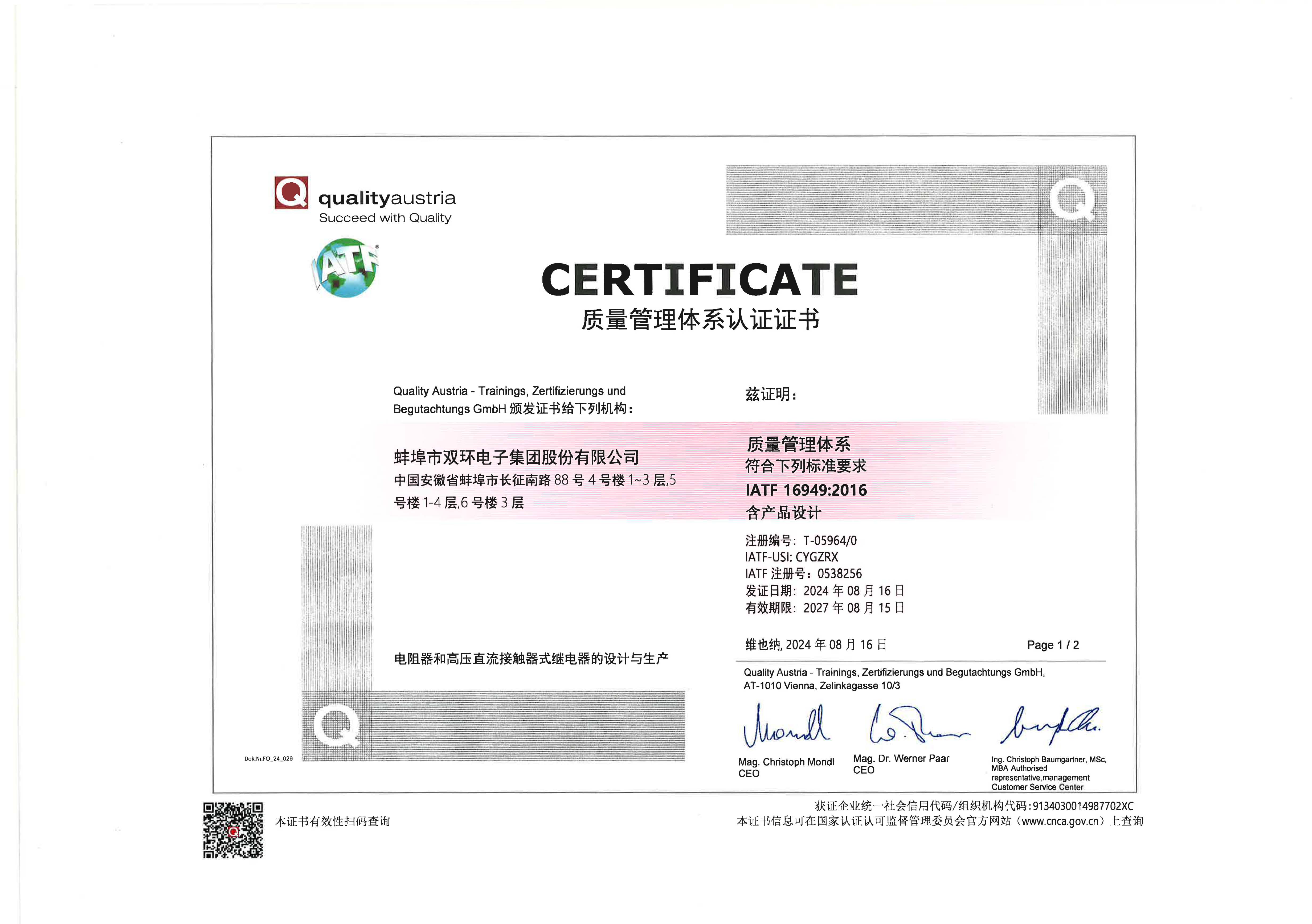 您好,歡迎光臨蚌埠市雙環電子集團股份有限公司官方網站!