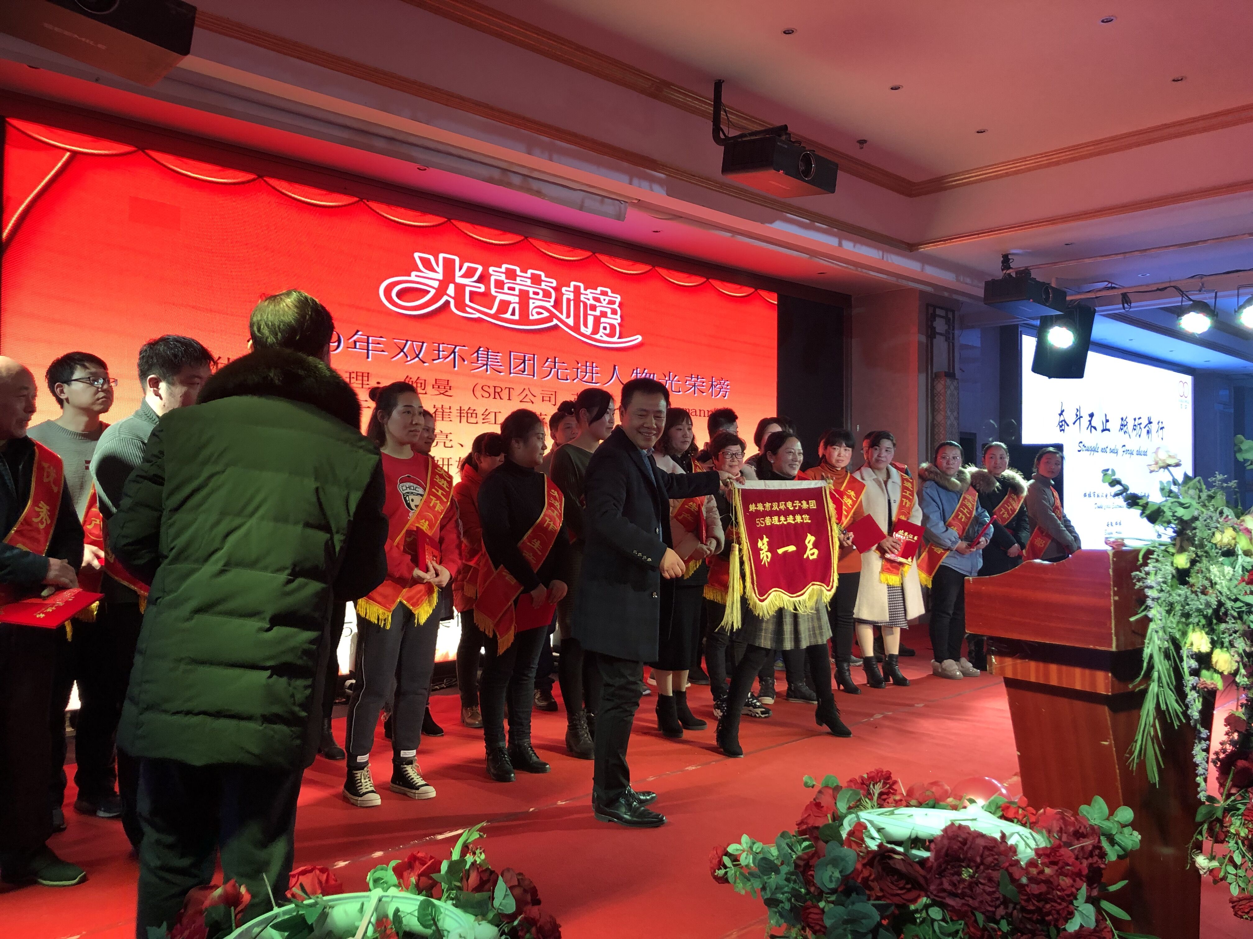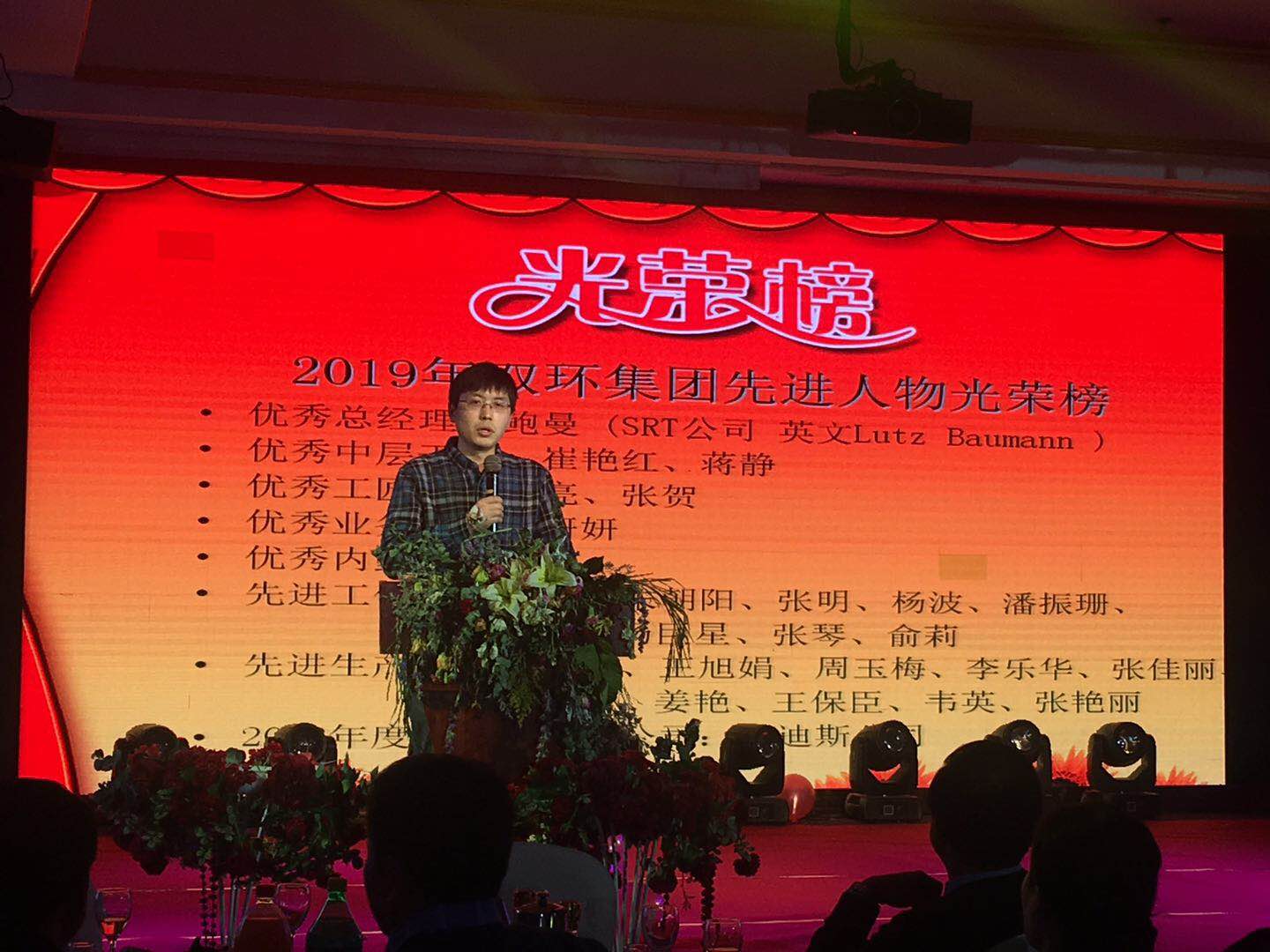 這一年,雙環(huán)所取得的輝煌成就,離不開全體員工的努力與付出,大家工作的勤奮、成功與挫折給公司留下了發(fā)展的足跡,大家辛勤的付出給公司留下了許多值得贊賞的故事。集團董事長及公司領導對2018年作出突出貢獻的先進工作者進行了表彰,分別頒發(fā)了年度先進員工獎及豐厚獎金。緊接著是先進代表發(fā)言,他們分享了在雙環(huán)這些年來的工作歷程,有跋涉的艱辛,有忙碌的汗水,有搏擊的歡暢,也收獲了成功的喜悅。
