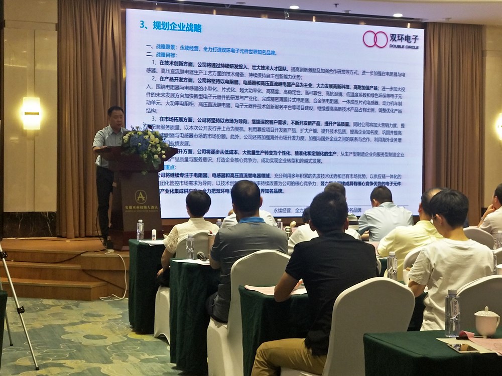 中國電子元件行業協會電阻電位器分會八屆一次理事會暨2019年度協會工匠表彰大會于2020年8月21日至23日在蚌埠安徽水利和順大酒店順利召開,蚌埠市雙環電子集團股份有限公司負責承辦本次大會。