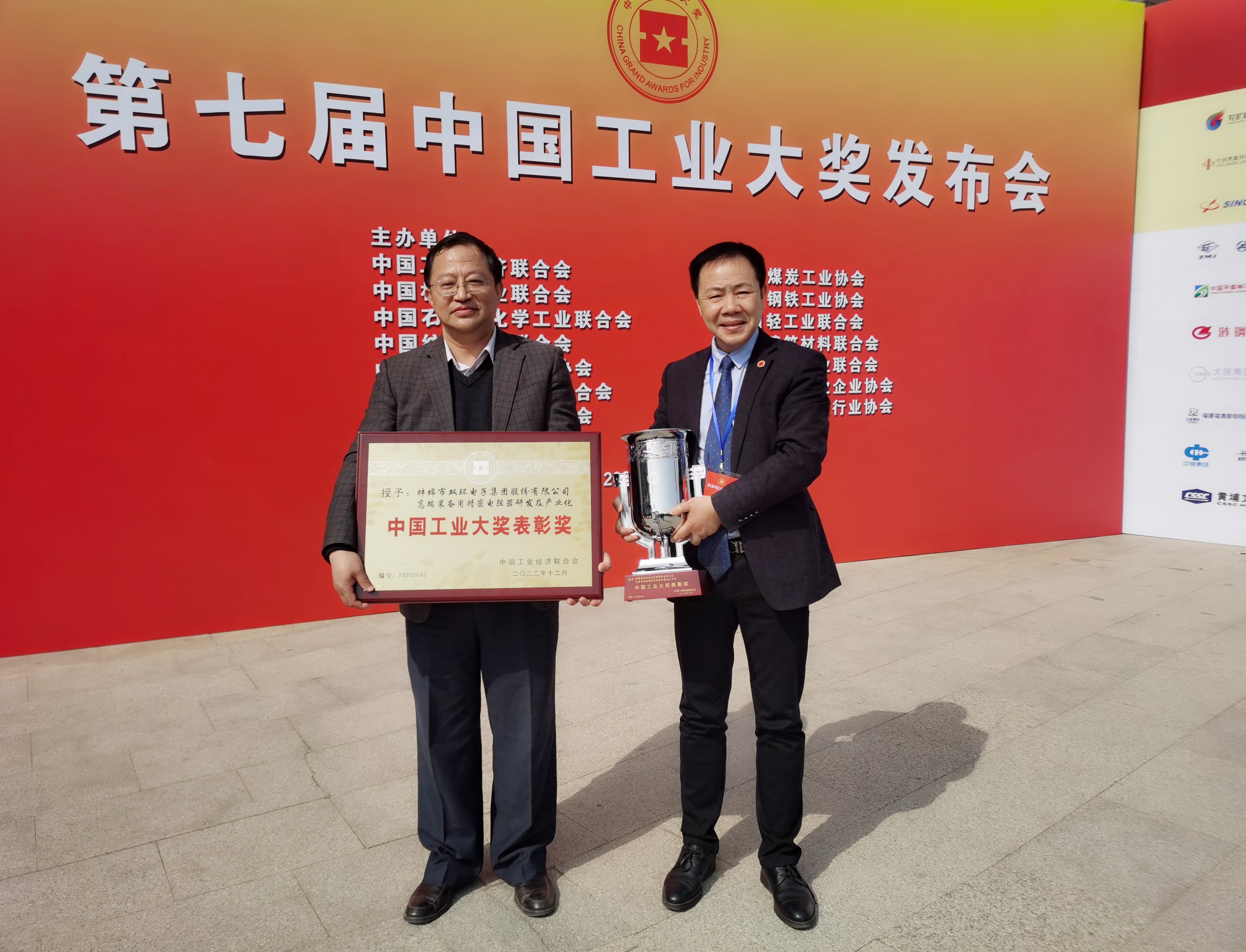 2023年3月19日,第七屆中國工業(yè)大獎發(fā)布會在北京友誼賓館隆重舉行。十屆人大常委會副委員會長顧秀蓮和國家相關部門領導出席發(fā)布會,獲獎企業(yè)負責人和全國各省市工經(jīng)聯(lián)負責人參加了發(fā)布會。蚌埠市雙環(huán)電子集團股份有限公司董事長李福喜和副總經(jīng)理邵建強作為項目獲獎單位代表受邀出席參加了大獎發(fā)布會。在會上發(fā)布的第七屆中國工業(yè)大獎獲獎名單中,雙環(huán)集團《高端裝備用精密電阻器研發(fā)及產(chǎn)業(yè)化》項目獲得中國工業(yè)大獎表彰獎。
